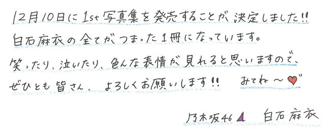 2014.11.6 白石麻衣さんの直筆メッセージを公開しました。